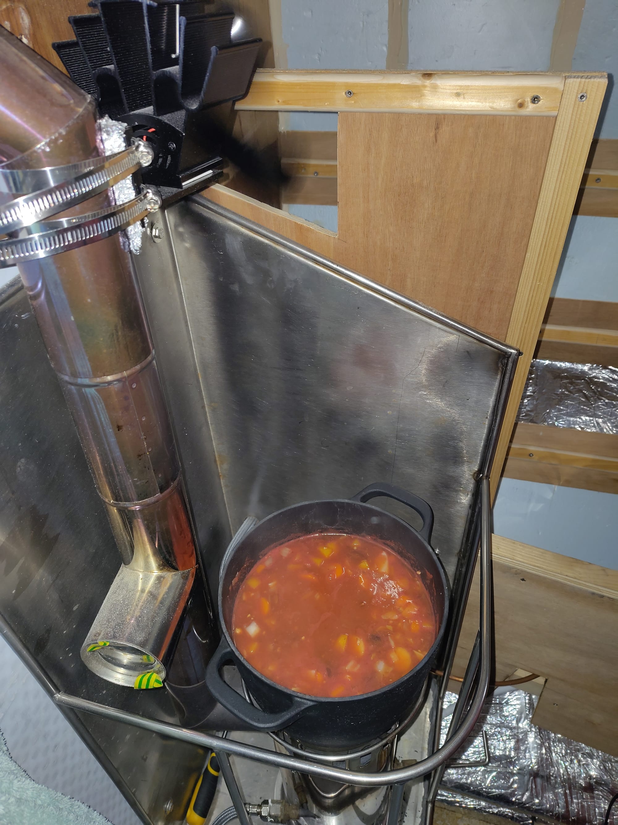 Yesterday and today we have cooked our dinner on the Refleks stove because we had it on any way to stay warm. That, and all the other changes (more solar, more things switched from 240V Ac to 12V DC), mean that we have been able to dramatically reduce our use of boatyard electricity, even with the bad weather.