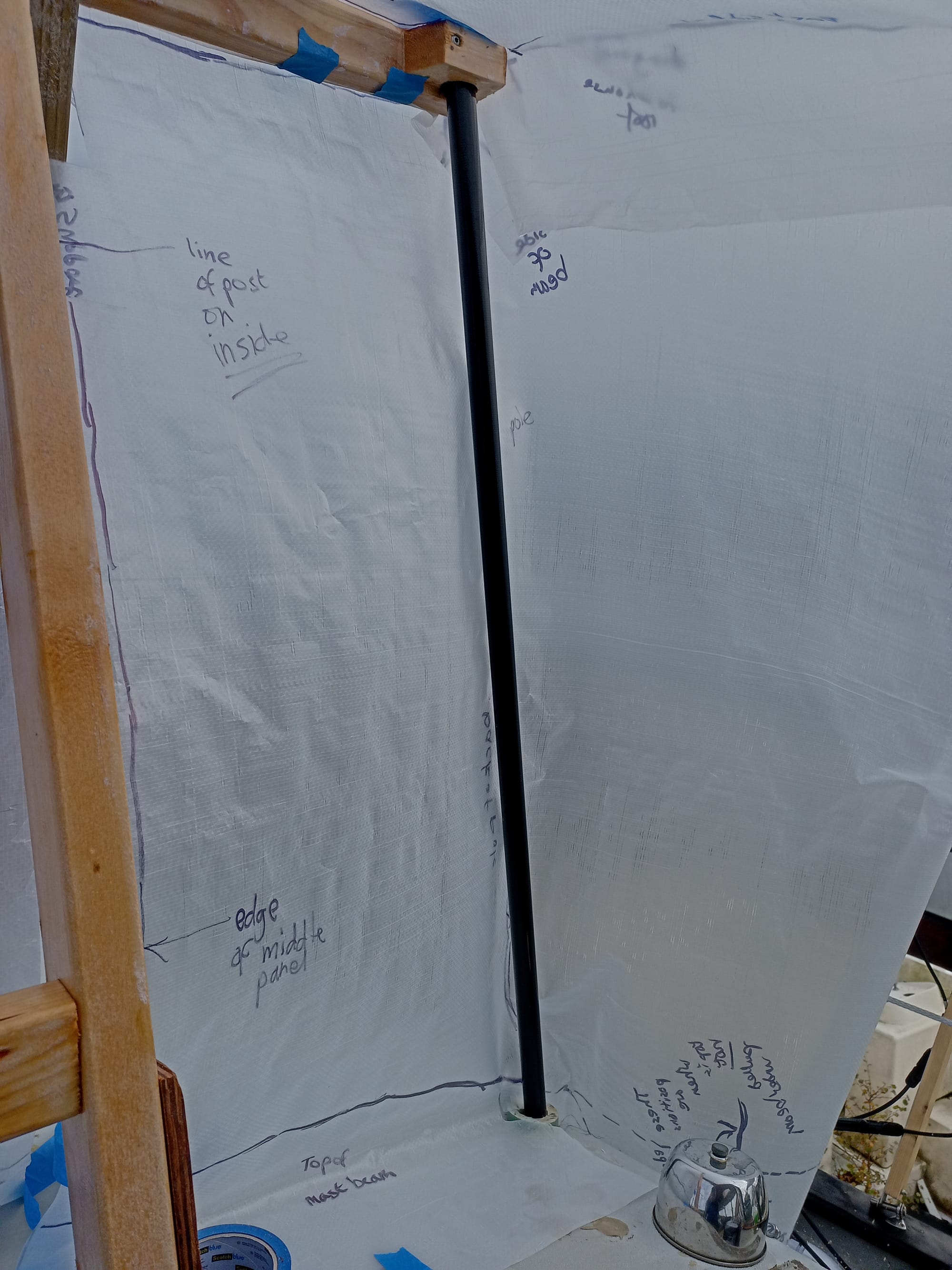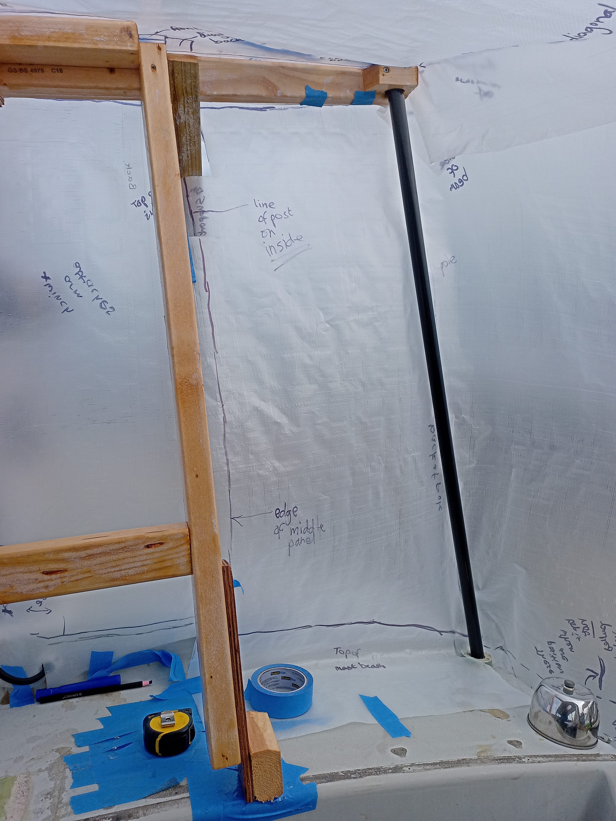 Before, during and after that, Jane, made templates for several more wheelhouse panels. You can now get a better idea of how it will look (all but the roof sections will be mostly "window").