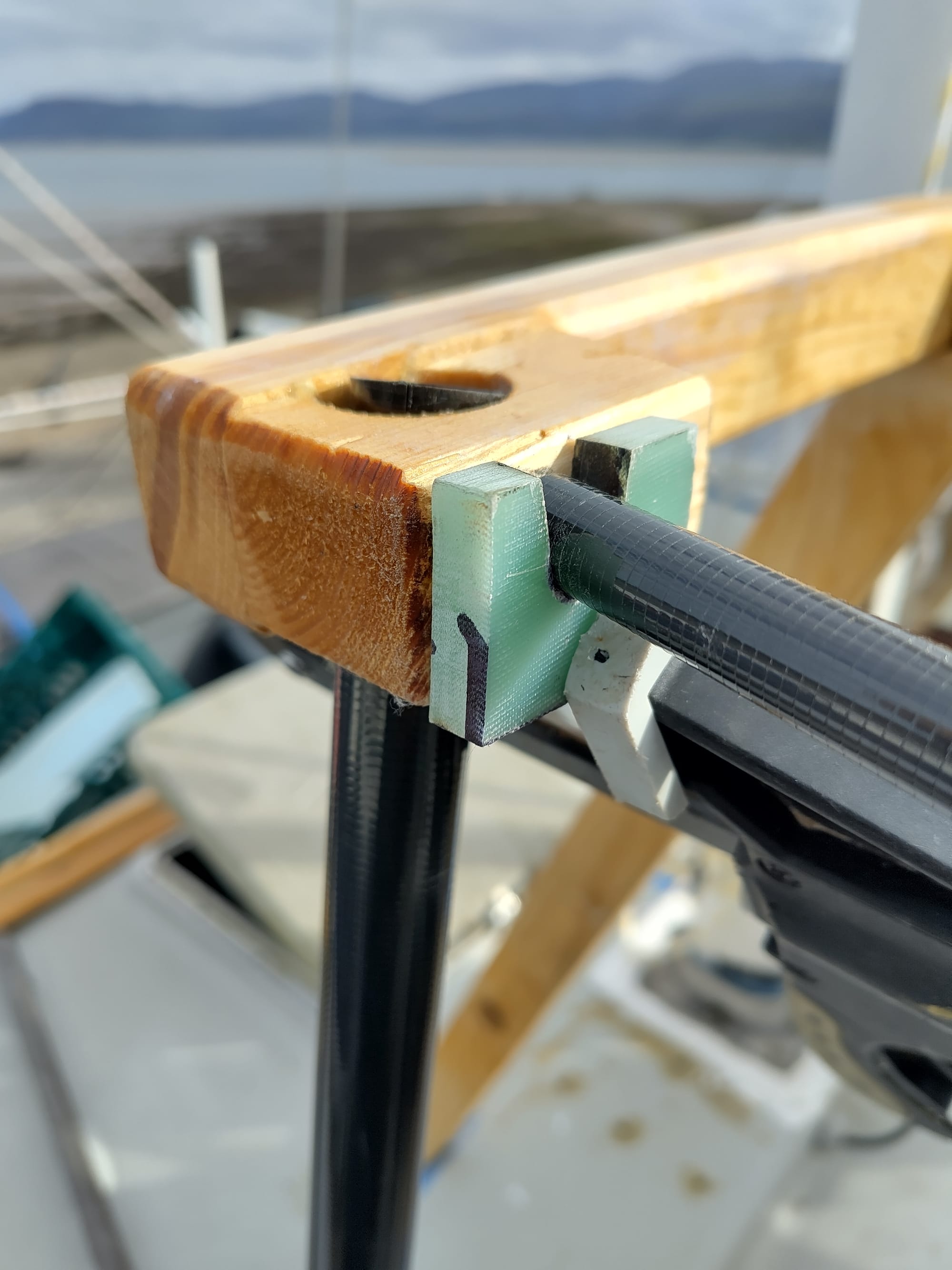 We sorted out the rods that will support the join between the roof and side door sections. They are ready for the support "cups" to be epoxied into place.