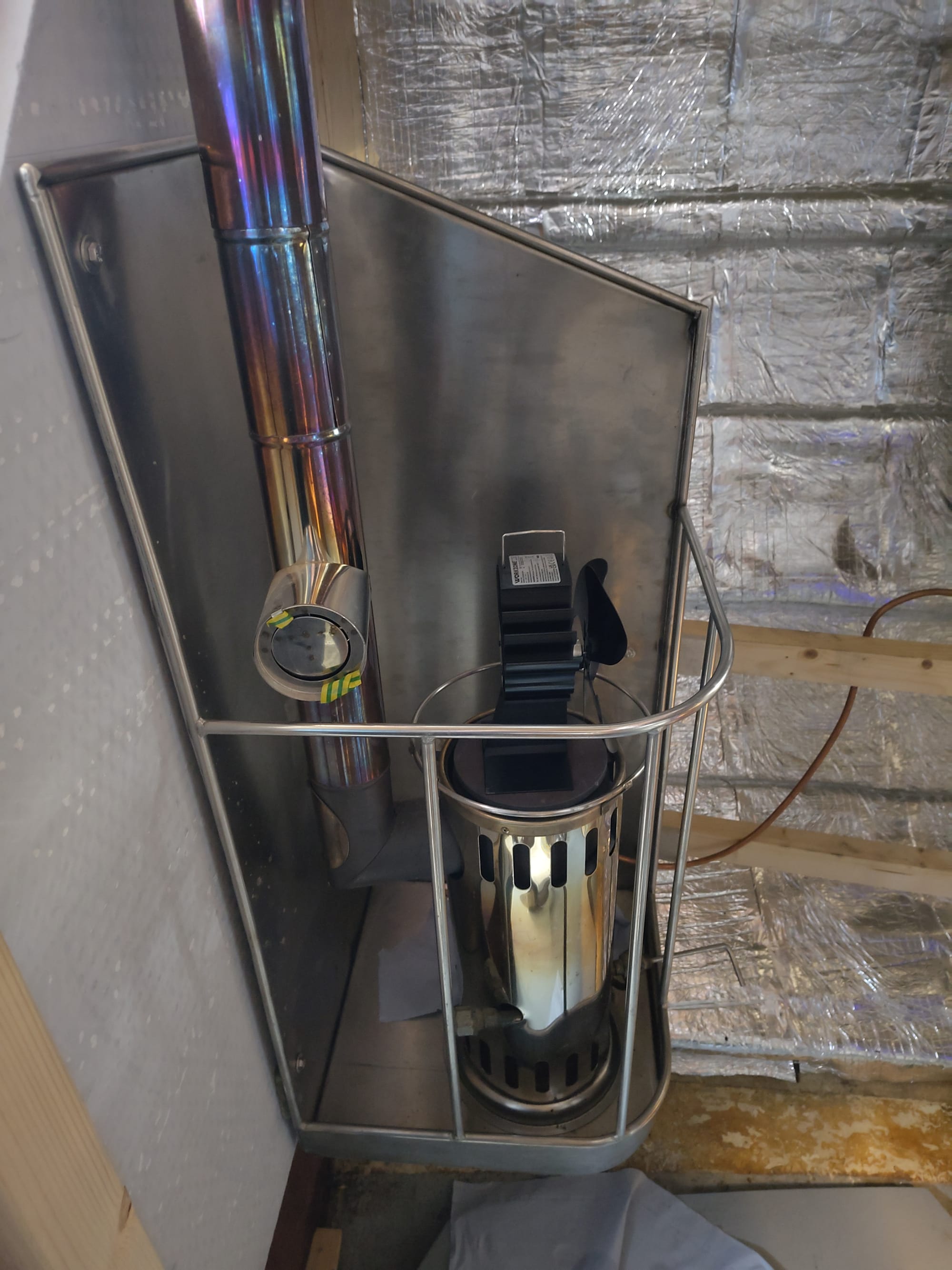 With the heat powered stove top fan (an Aldi central aisle bargain), it already heated our aft cabin bedroom nicely. Once I get the little radiators and towel rail (in our en-suite) fitted, it will be awesome. We are getting another fan that will be fitted to the chimney high up and directed heat forward into the saloon.